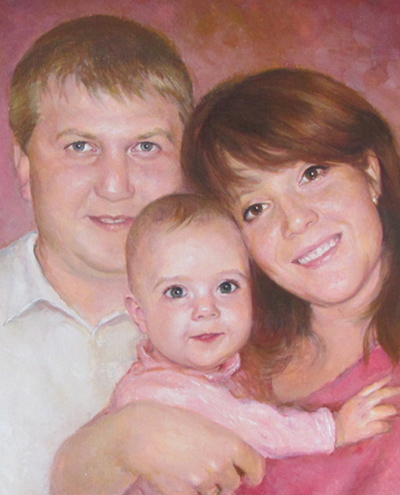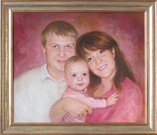 Портрет молодой семьи с ребенком. Cемейный портрет с ребенком в подарок молодому отцу.